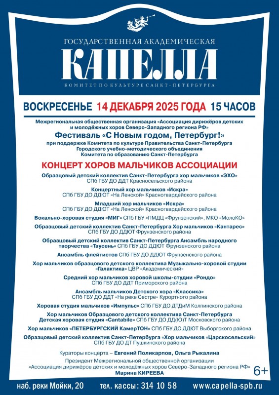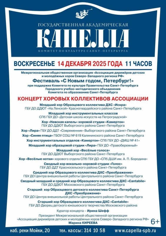 Ежегодно в декабре в одном из самых красивых концертных залов Санкт-Петербурга – Государственной академической капелле – проходит хоровой фестиваль «С Новым годом, Петербург!». Этот предновогодний музыкальный праздник с каждым годом объединяет всё больше детских и молодёжных хоровых коллективов, стремящихся подарить зрителям атмосферу ожидания чуда.